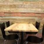 The dining room carries much of the modern styling used in the truck, using clean lines and modern lighting mixed with reclaimed wood. The menu is a mix of food truck favorites and dishes from previous dinner specials.